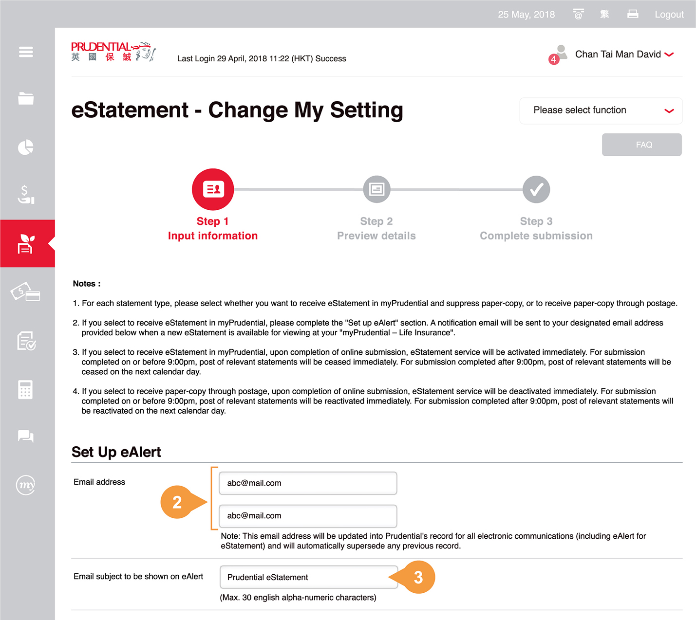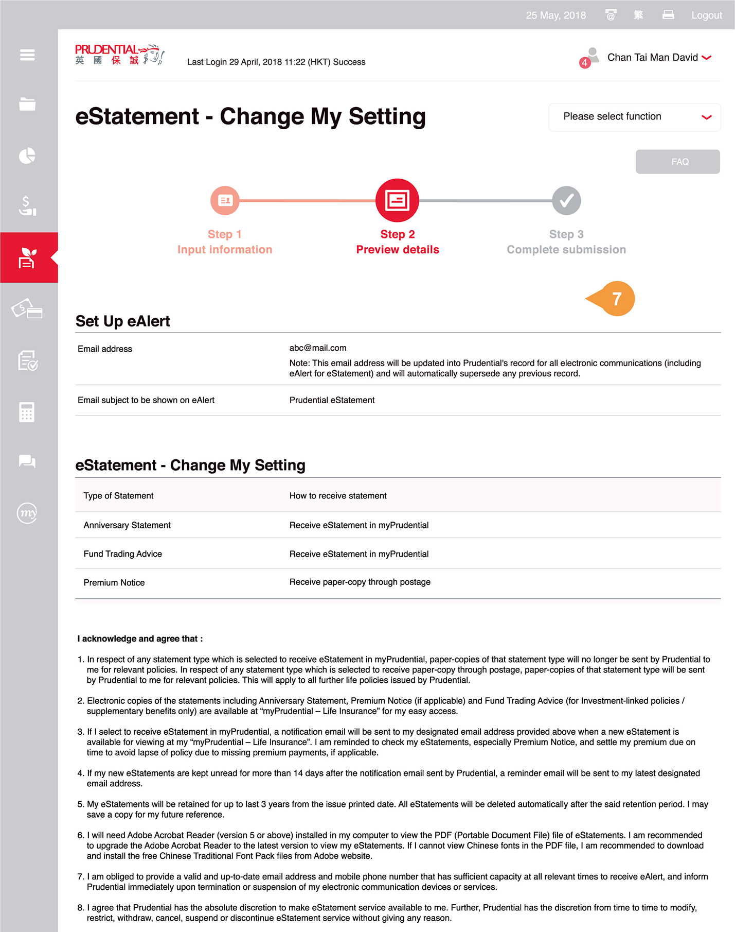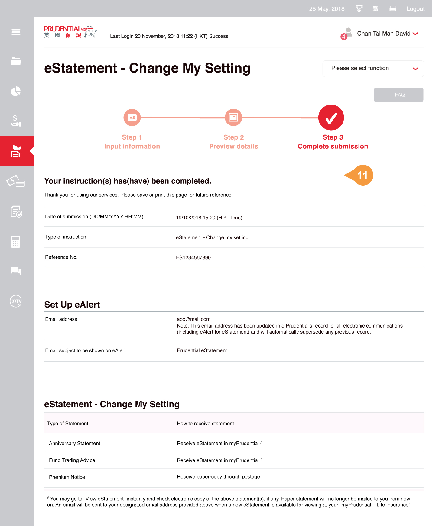 Select “eStatement - Change my setting” in “Please select function” to enter the page