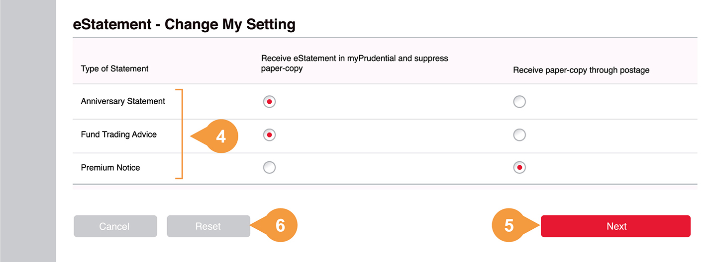 Receive eStatement in myPrudential and suppress paper-copy OR;
