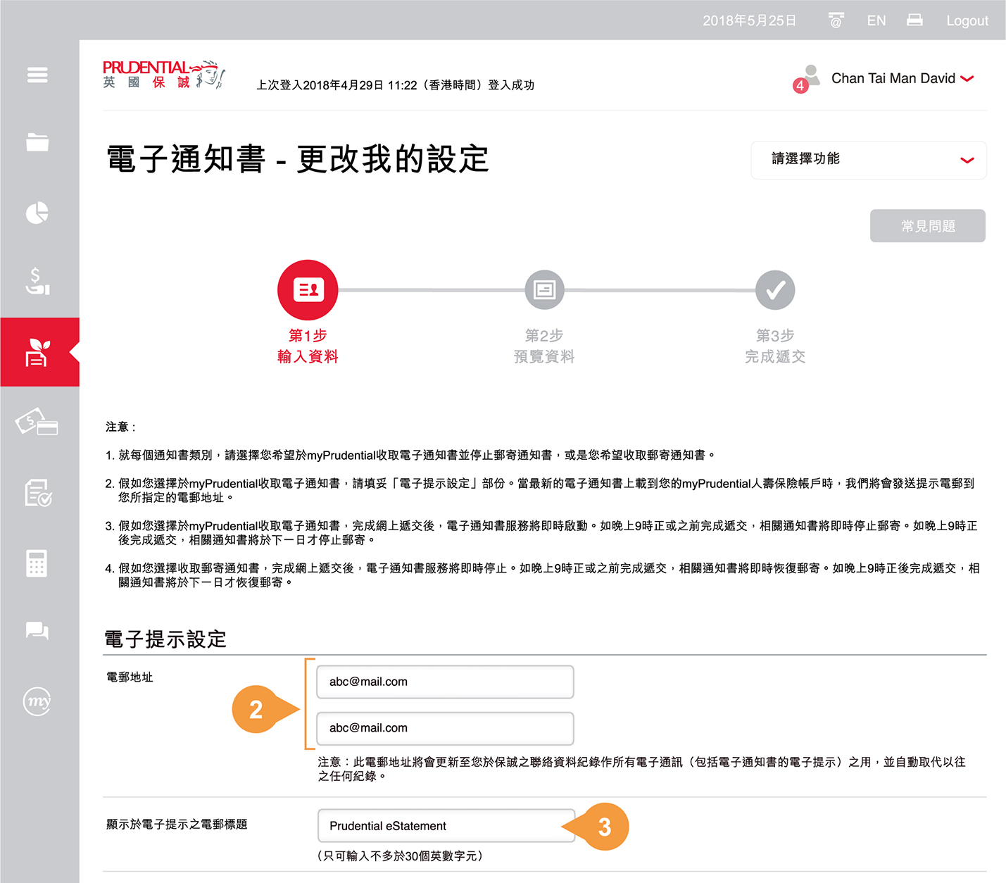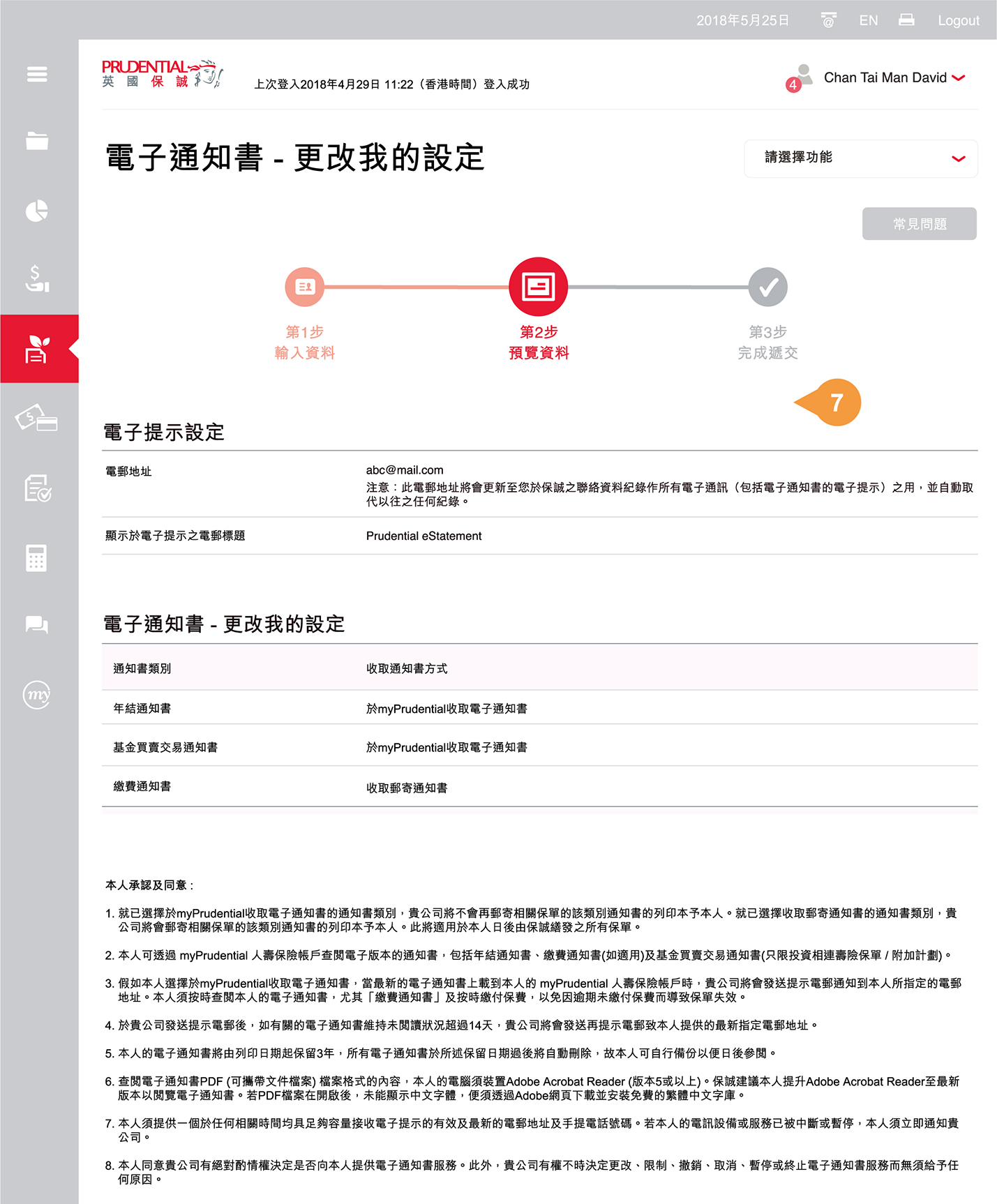 於myPrudential收取電子通知書,並停止郵寄通知書或;