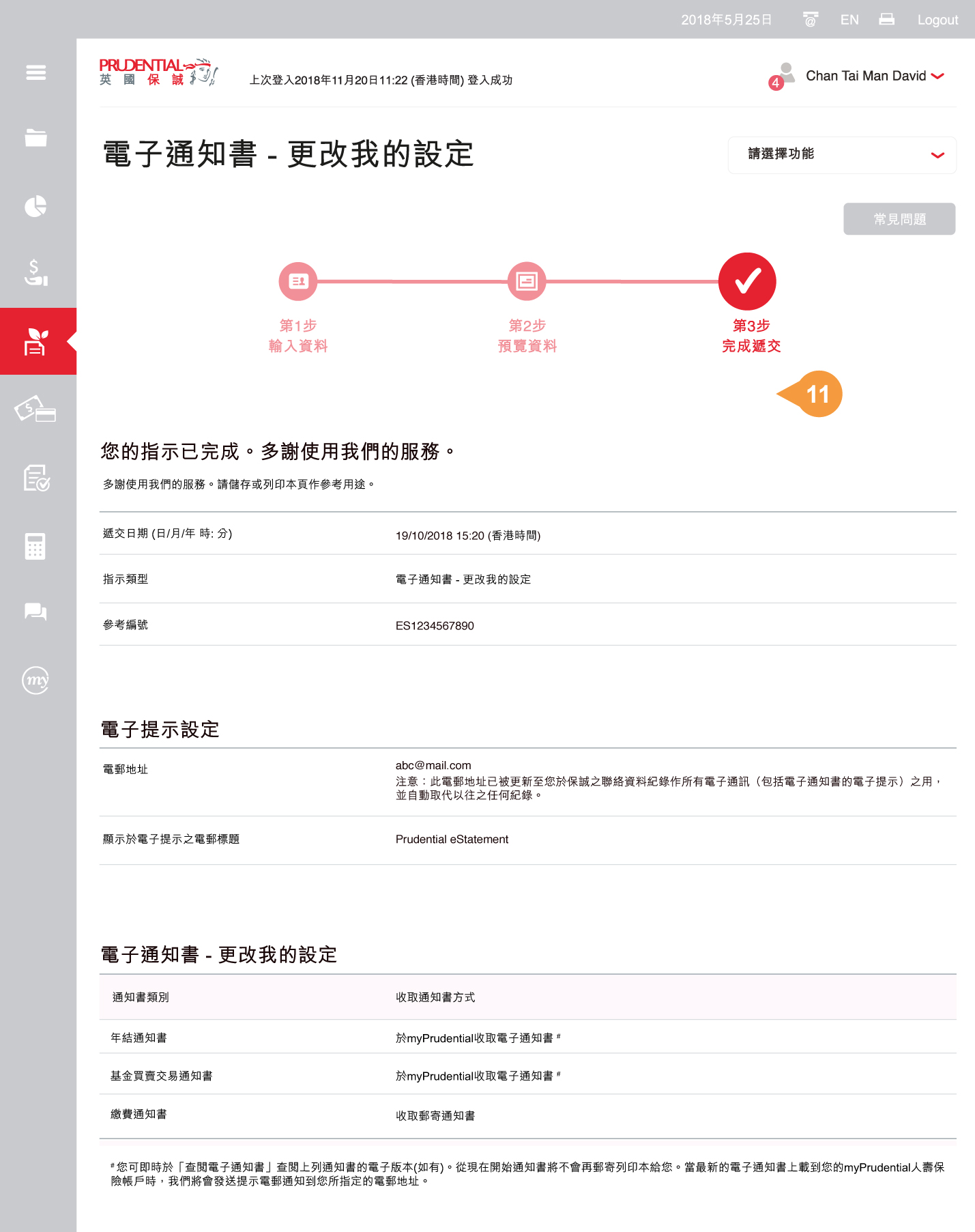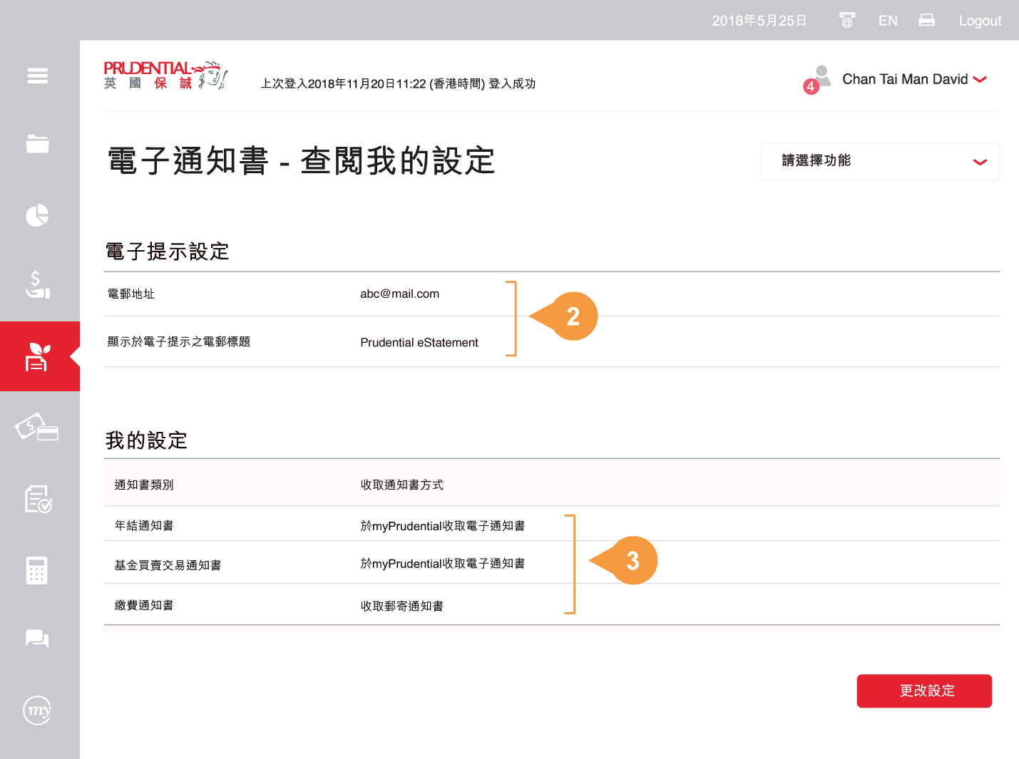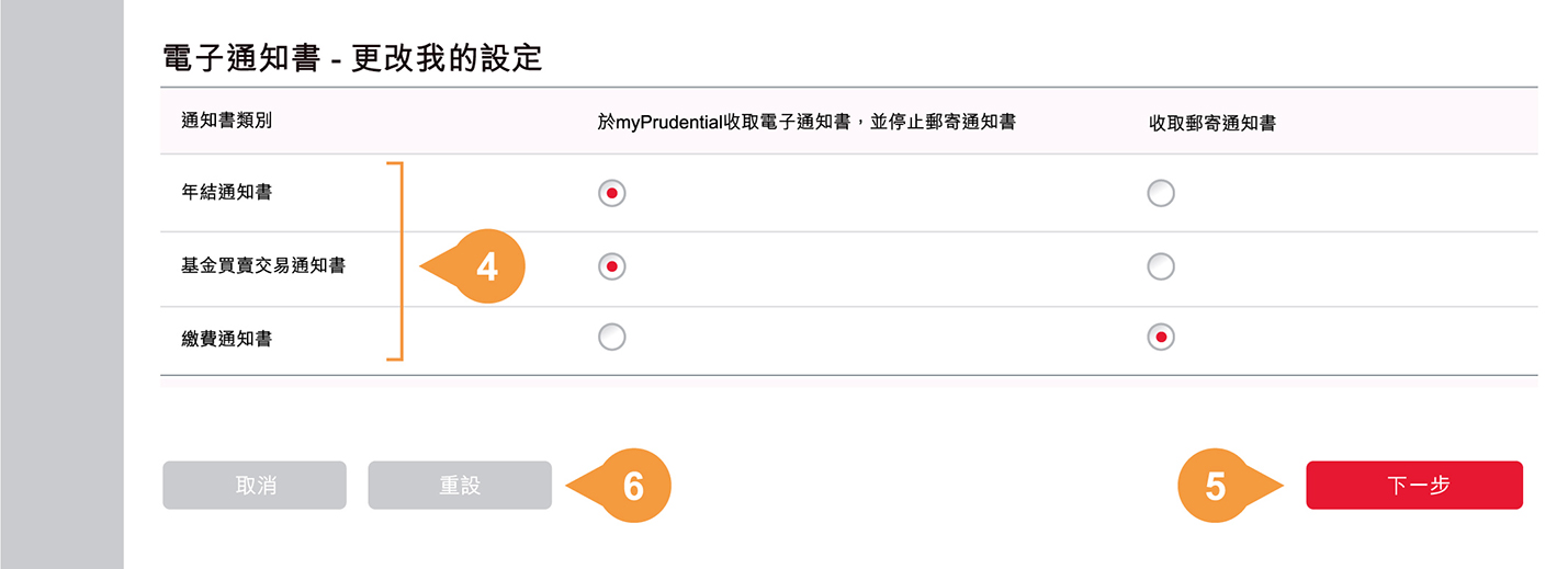 注意:正式收據及信件(通知書除外)不設更改設定。保單持有人會以郵遞方式收取收據及信件(通知書除外)並可同時於myPrudential查閱電子版本。