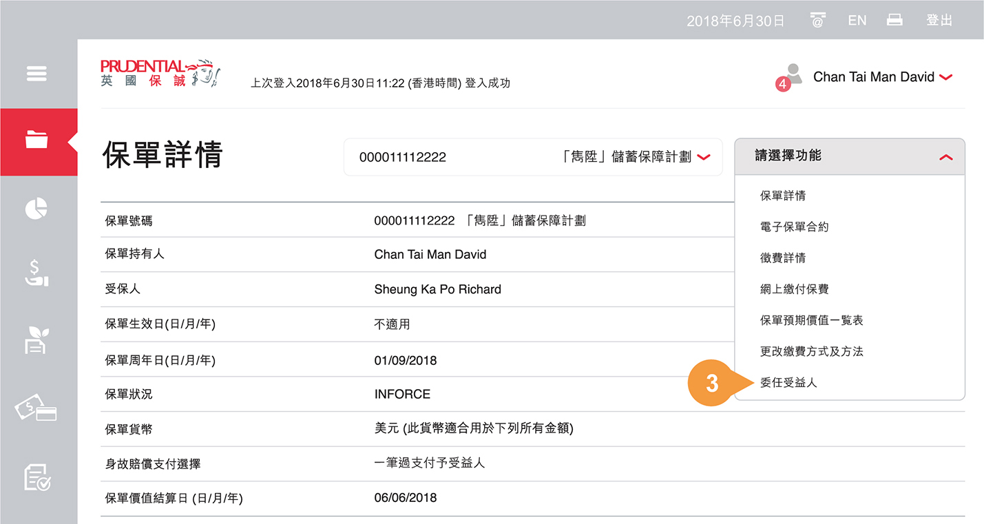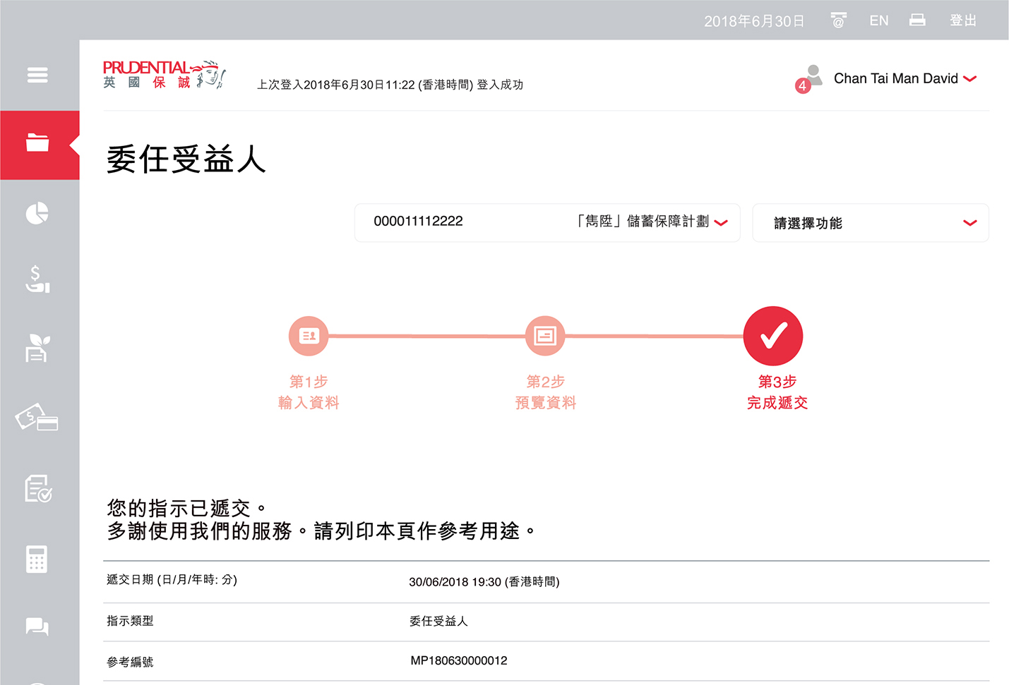 注意:此服務只適用於合資格的保單,如您所選的保單不符合使用委任受益人服務的資格,系統將會作出提示。