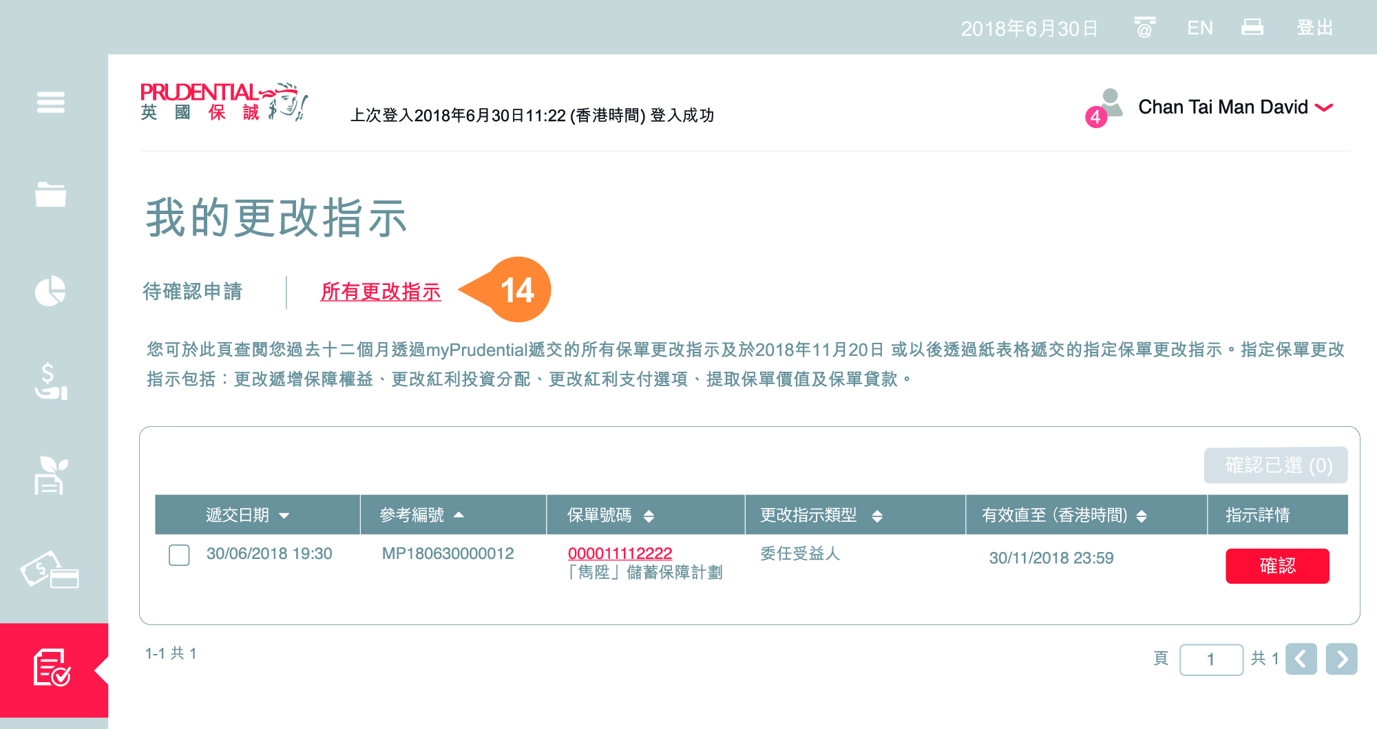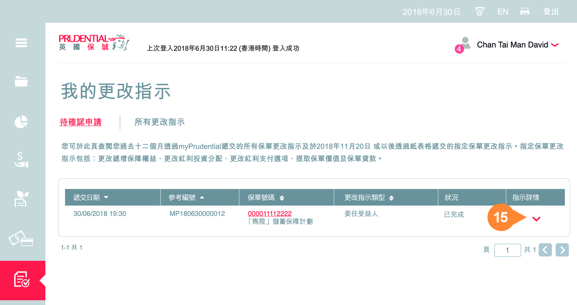 選取您的更改指示項目並於「指示詳情」欄按「下箭咀以查看您透過網上或書面方式遞交的詳情。